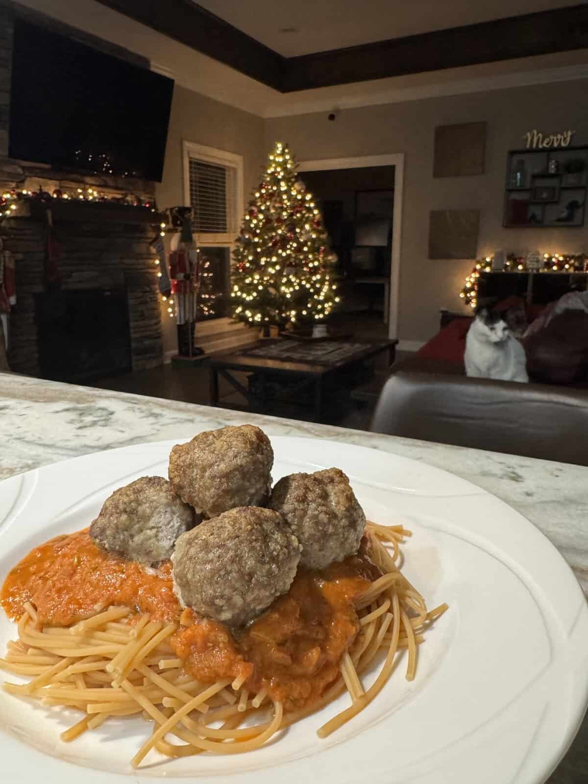 Spaghetti and meatballs hit the spot tonight. I did all beef, so I upped the seasoning and added 1/4 tsp crushed red pepper.