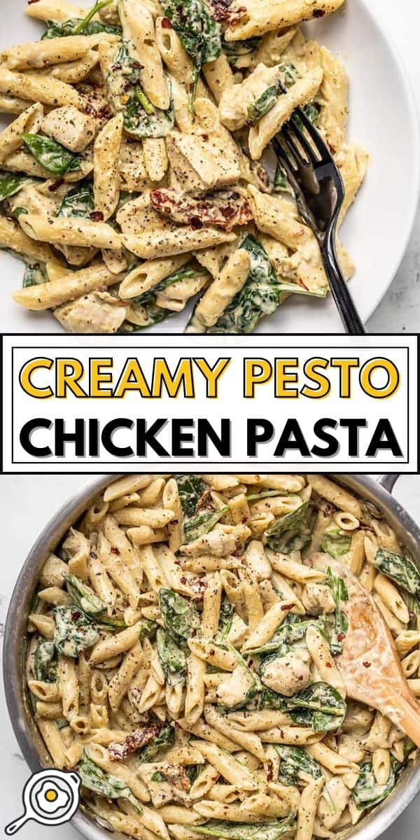 - Basil Pesto: I just love the herby flavor of basil pesto mixed with the smooth sauce and chicken. You can use homemade or store-bought pesto; either will work.