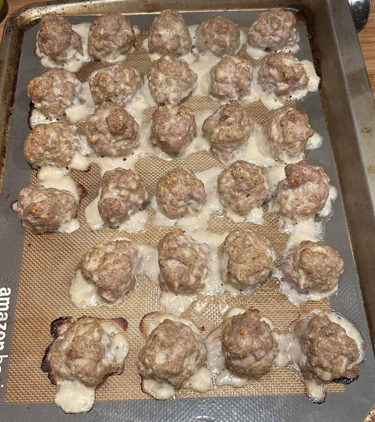 I like to finish cooking the meatballs in a skillet with a little butter or oil to get a nice brown finish.